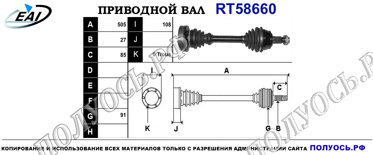 Приводной вал передний.Левая/Правая сторона. Для механической коробки