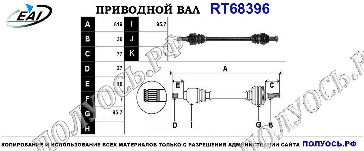 Приводной вал R для автоматической коробки