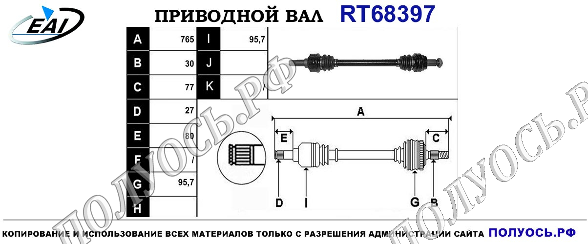 Приводной вал L для автоматической коробки