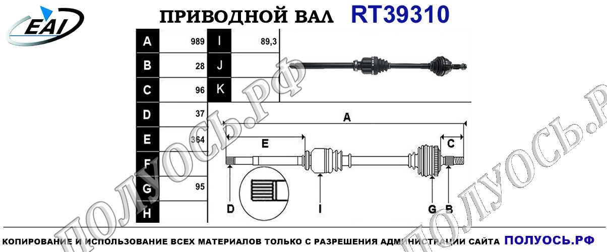 Приводной вал R для автоматической коробки