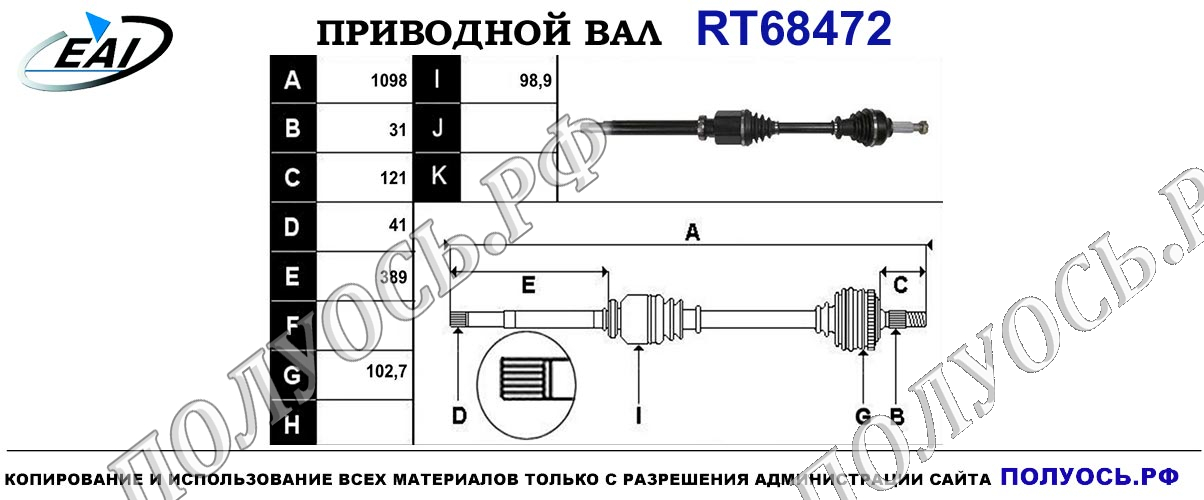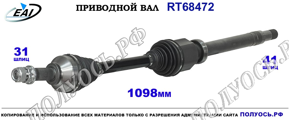Приводной вал передний.Правая сторона для механической коробки