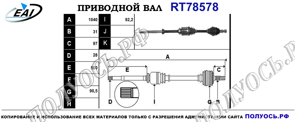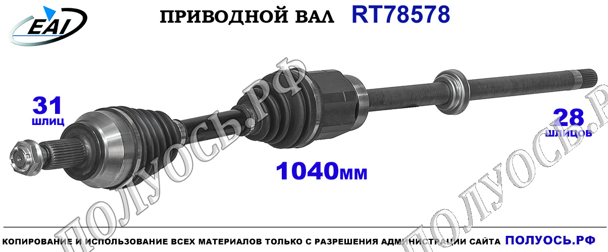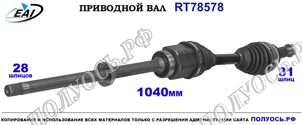 Приводной вал передний.Правая сторона для автоматической коробки