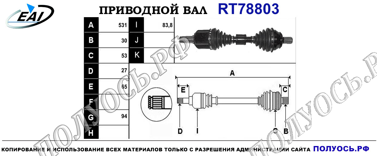 Приводной вал L для автоматической коробки