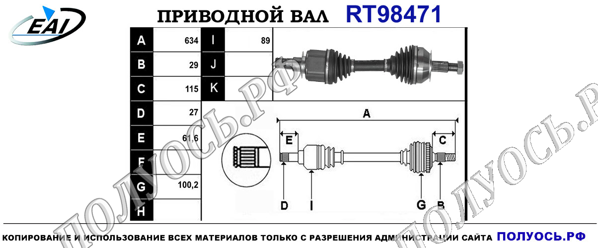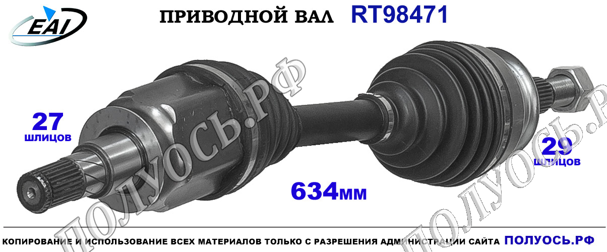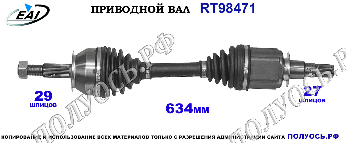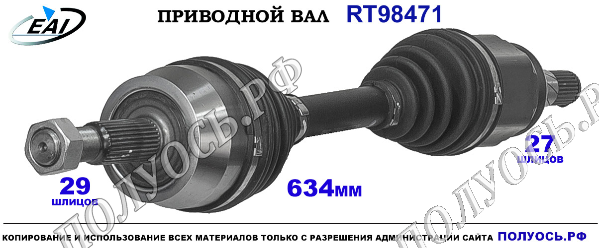 Приводной вал передний.Левая/Правая сторона для механической коробки.