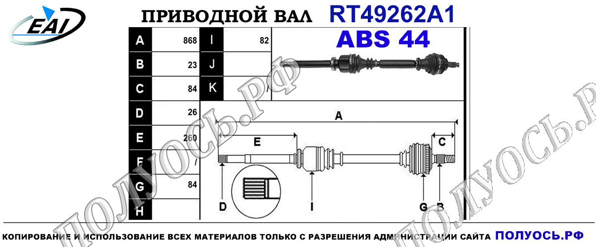Приводной вал передний.Правая сторона для механической коробки