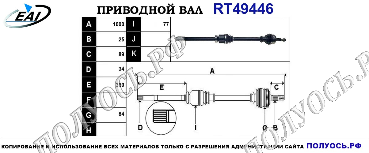 Приводной вал R для автоматической коробки